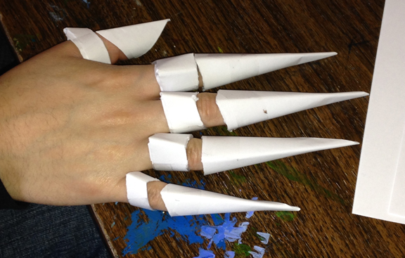 Michael’s gauntlet in folded paper is in its early stages, but is still quite intimidating.