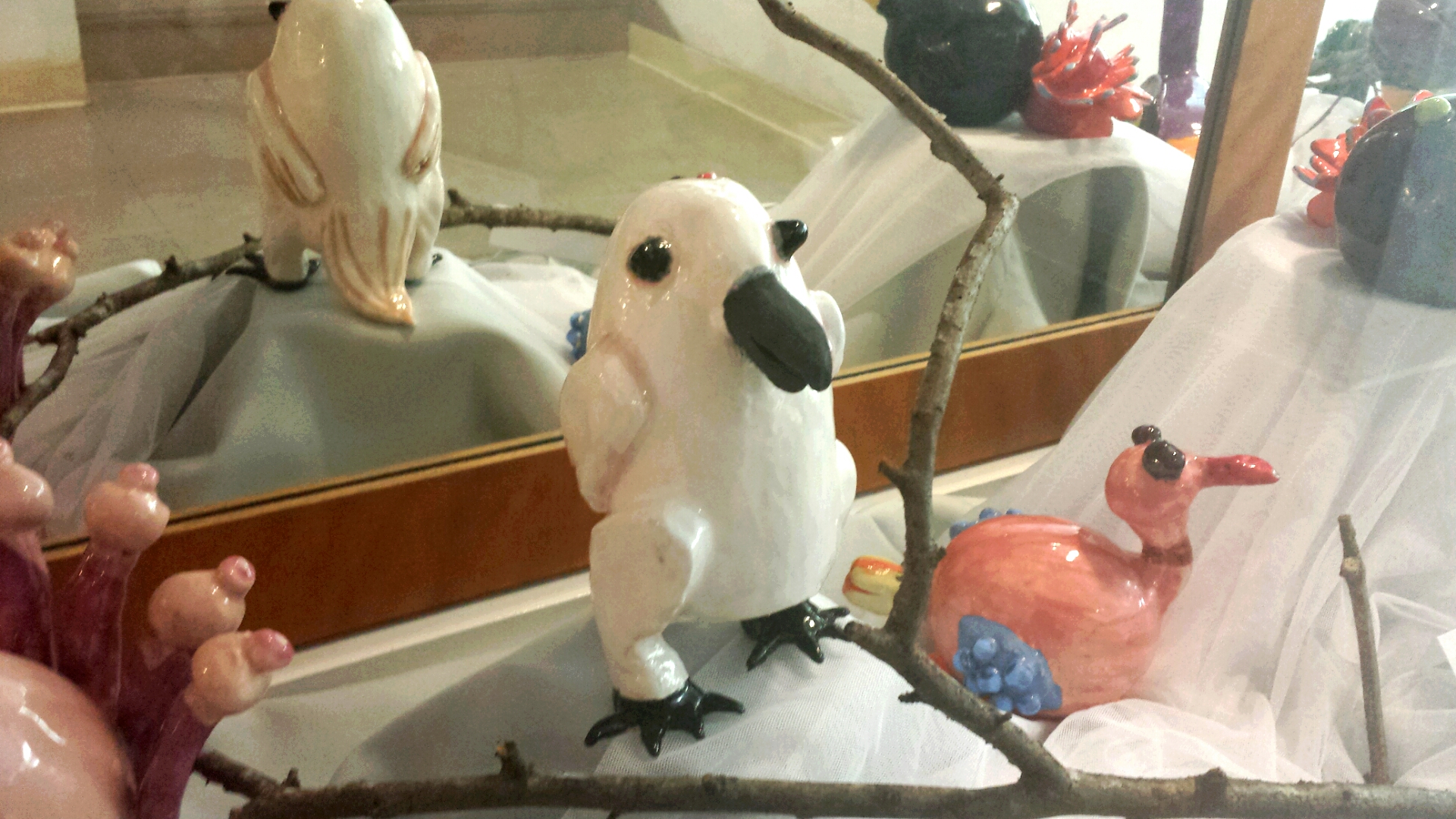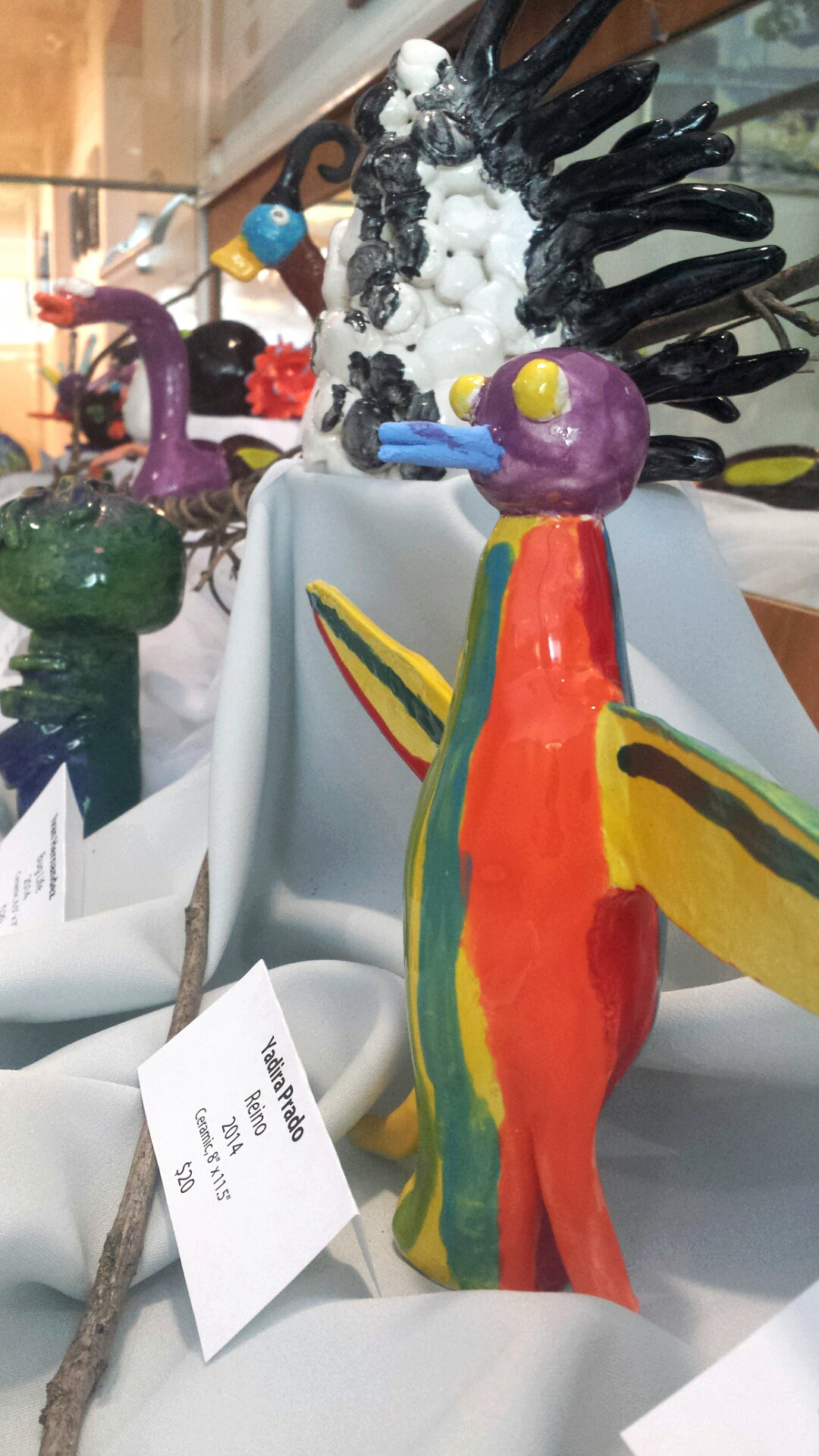 Currently nesting in the 2nd floor display case in the Merced Multicultural Arts Center is a flock of sculptures created by the EC artists. Don’t let the feathers fool you – it’s not ‘for the birds!’ The collection features daring shapes and soaring colors that would make a peacock jealous.