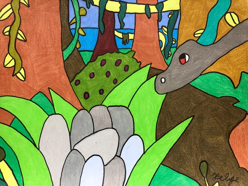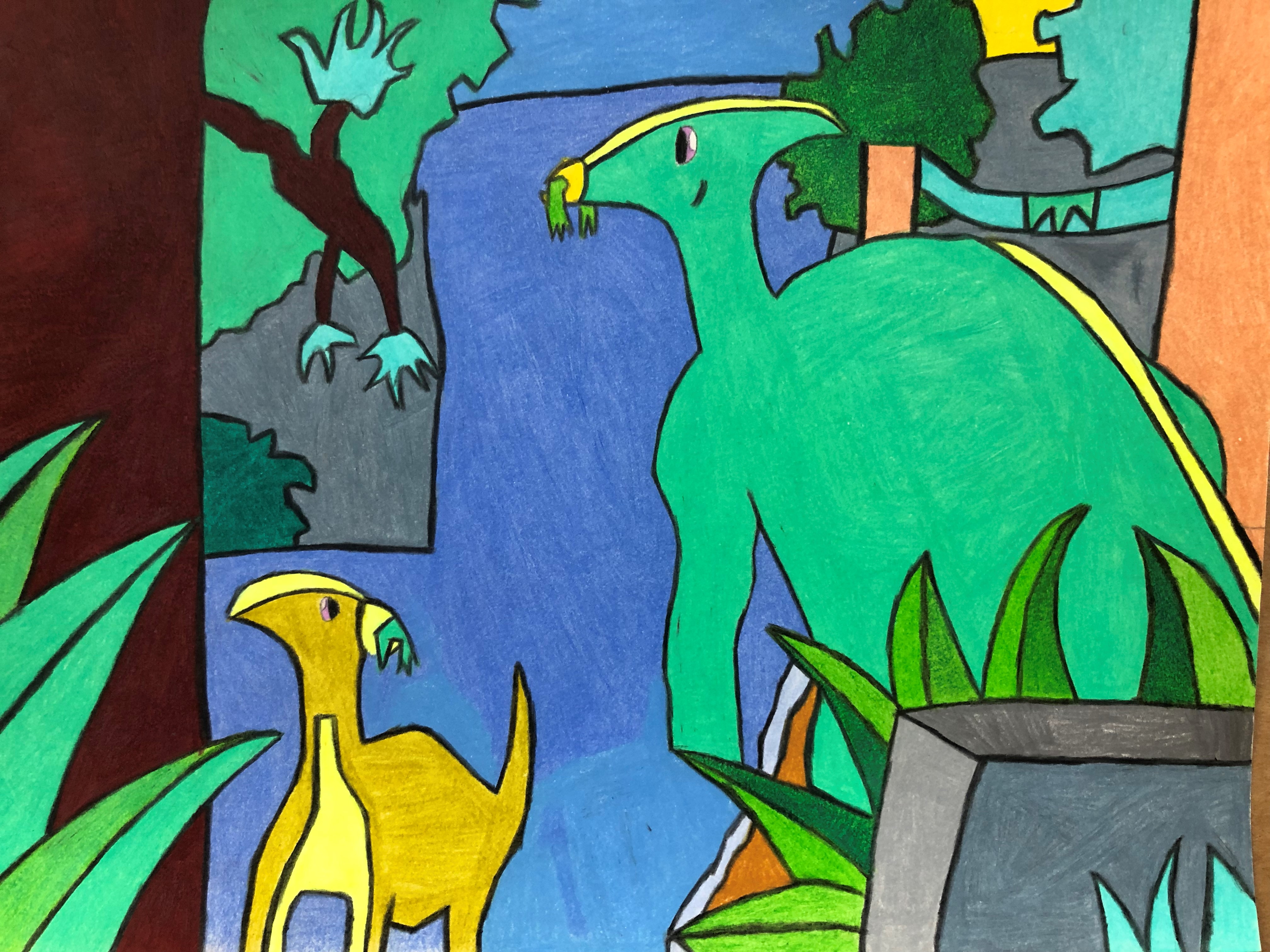 When creating visual art, I’d say my work is super influenced by dinosaurs. I love dinosaurs, I love the history and I love that through paleontology we’ve been able to learn more about what these prehistoric creatures were doing and what they possibly looked like. I love the Jurassic Park franchise, I’d like to think that someday we’ll know what dinosaurs actually sounded like from looking at fossils. We’re really lucky fossils were left behind and haven’t turned into dust, we may have never known there was creatures before us if there wasn’t something left behind after their inevitable doom. Artistically, I’d say my experience visiting natural history museums during my trips are essential to my work and I’d love to visit all the museums holding dinosaur fossils in the US.