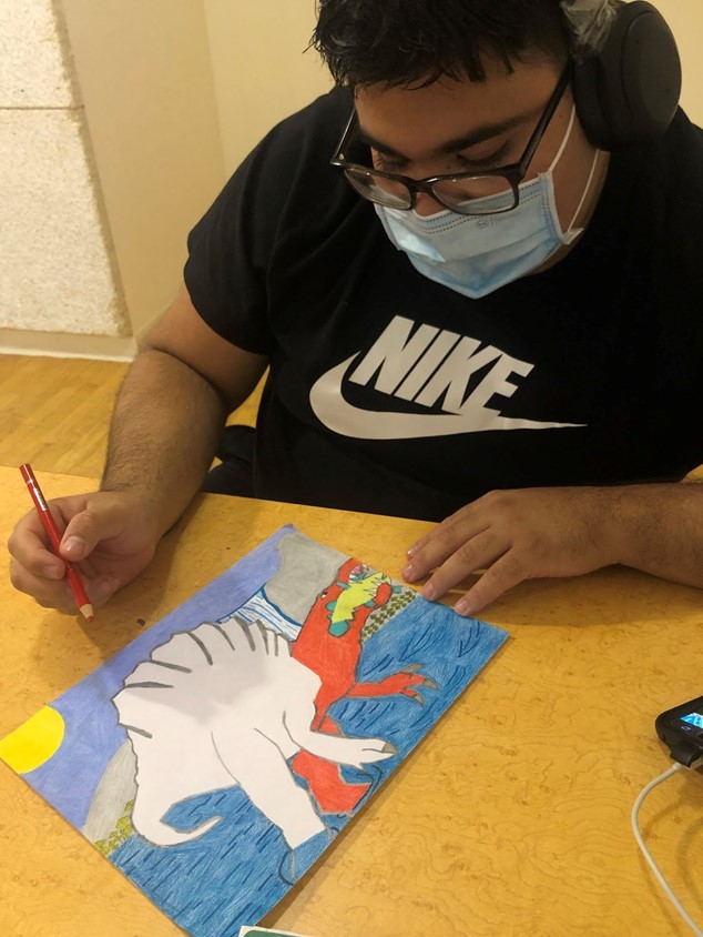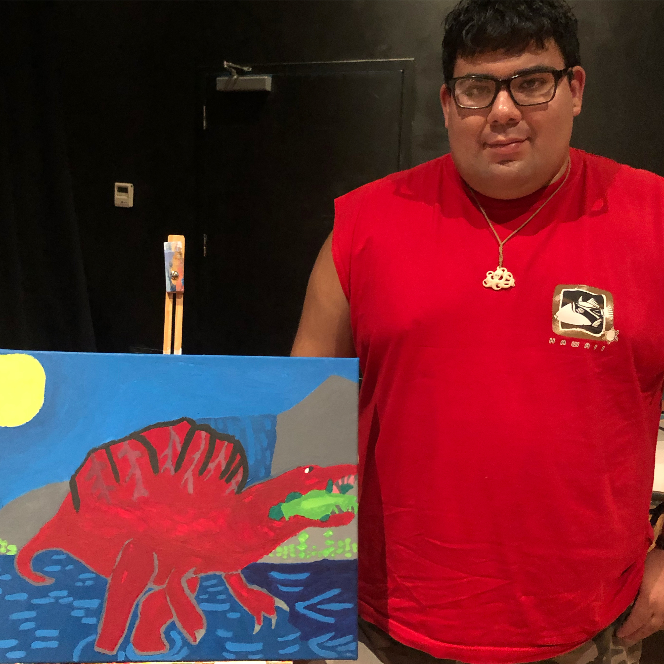 Felipe is a visual and performing artist that joined the EC in 2017. Felipe is naturally a theatrical performer, often filling the studio with his voice acting or sharing his current video interests. Felipe loves to surprise a room when it is full of silence, valuing the shock rock styles of Alice Cooper, King Diamond and Gene Simmons. Felipe is an avid video gamer, on his breaks you can often find him playing Mario or Sonic the Hedgehog games. Felipe is a colored pencil and ceramic artist currently exploring acrylic painting.