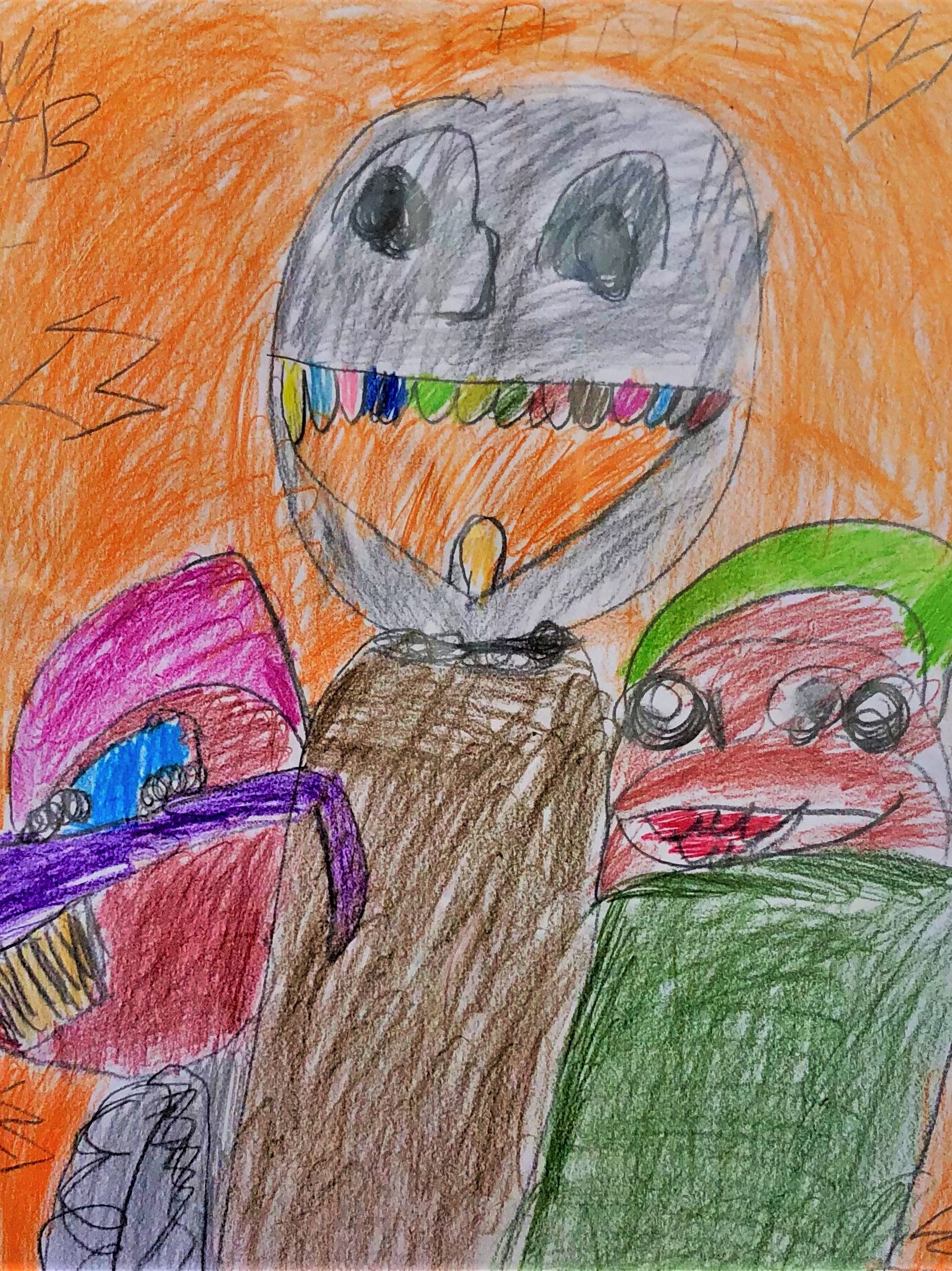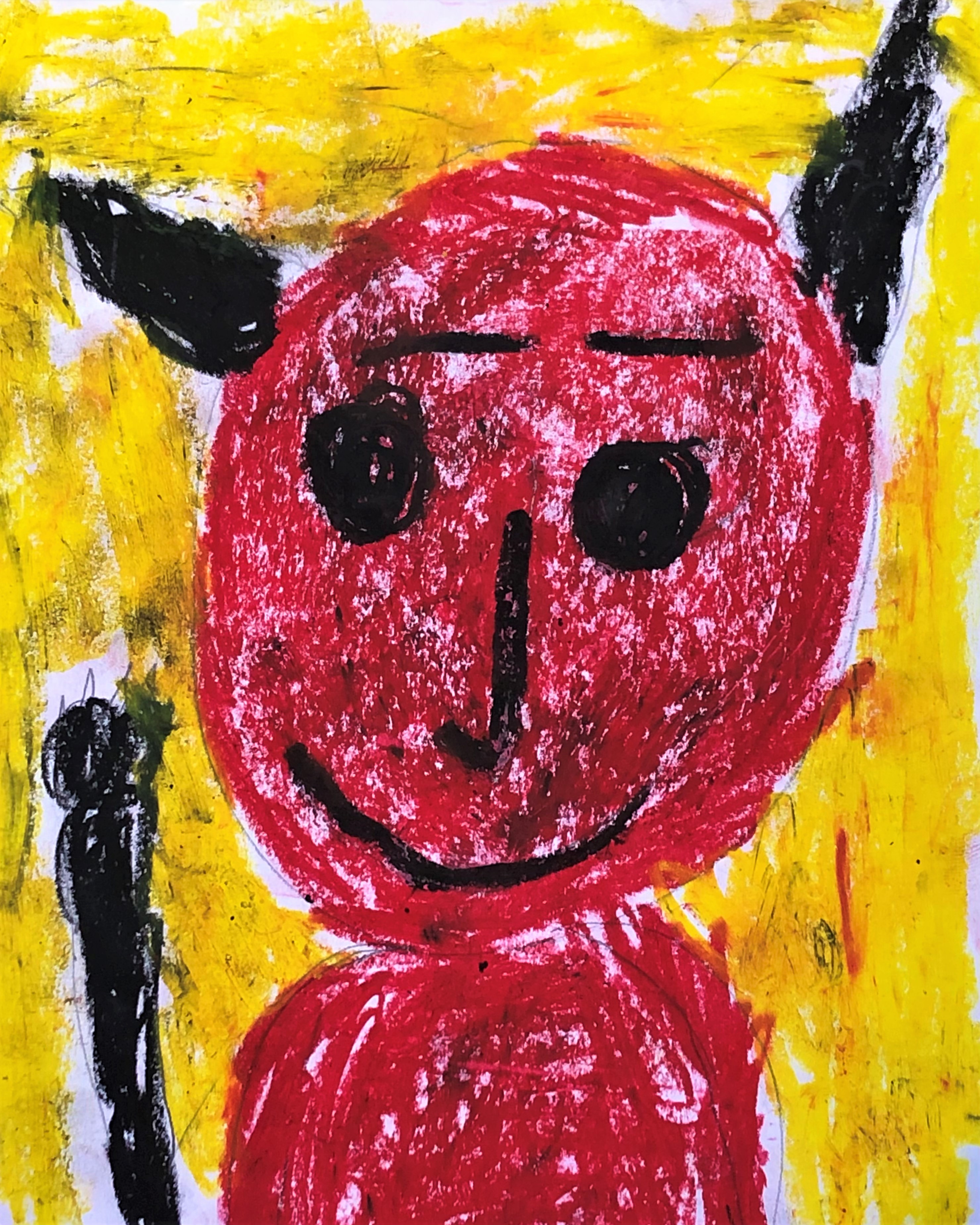 Currently, I create portraits of monsters I imagined like my eyeball monster and a comedic character I call Devilbaby. I create art that shows the many funny things Devilbaby does like play the keyboard and go shopping at the store. When people look at my art I want them to feel. For example, if it’s scary I want them to feel scared and if it’s funny I want them to find it funny.
